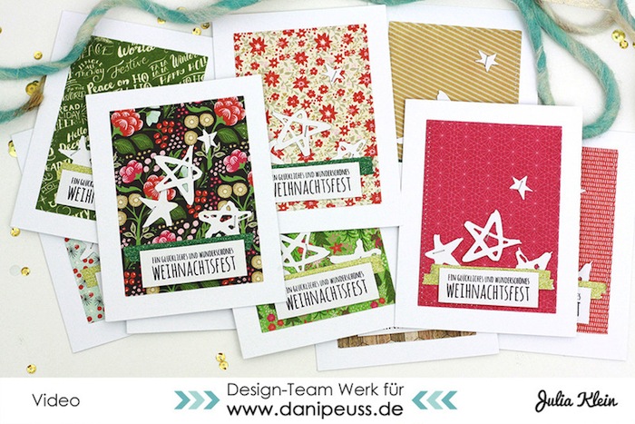 Wie ich die Karten gebastelt habe, könnt ihr in diesem Video sehen. Dort sage ich, dass ich vor habe, alle 25 Karten fertig zu machen. Zu diesem Zeitpunkt wusste ich aber auch noch nicht, dass ich meinen Mann dazu bekomme, an einem lauwarmen Sommerabend auf der Terrasse mit mir gemeinsam zu basteln :) Er hat die Big Shot bedient (darin ist er mittlerweile fast Profi) und ich habe gestempelt und zusammengeklebt. Teamarbeit, wie ich sie liebe!