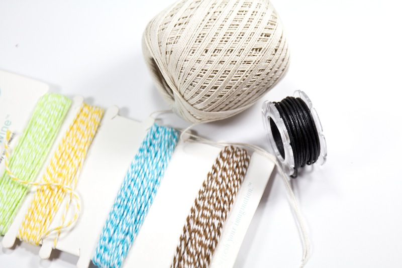 Zum Nähen eignen sich glatte und reißfeste Garne verschiedenster Stärken am besten, aber auch die Verwendung von Wolle, Stoffbändern oder dekorativen Garnen, wie Bakers Twine, ist möglich und machbar.