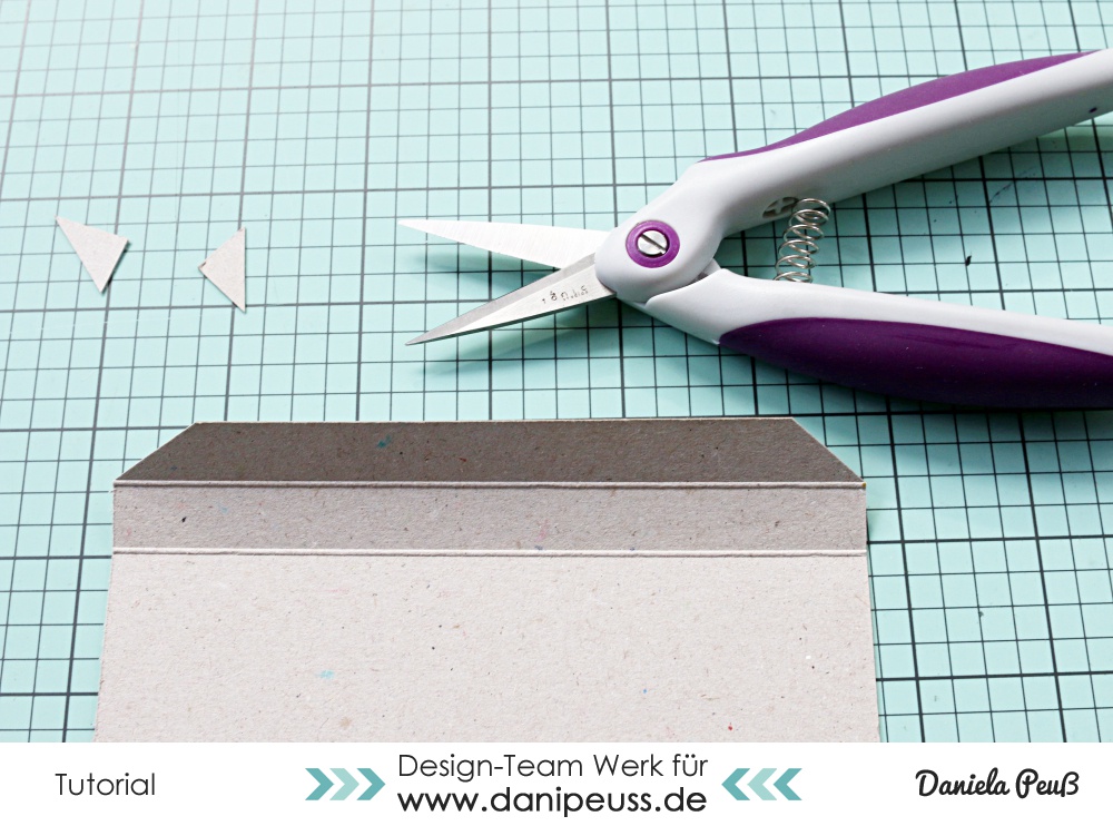 Schneidet bei den 3 kleinen Stücken die Ecken der äußeren Lasche ab