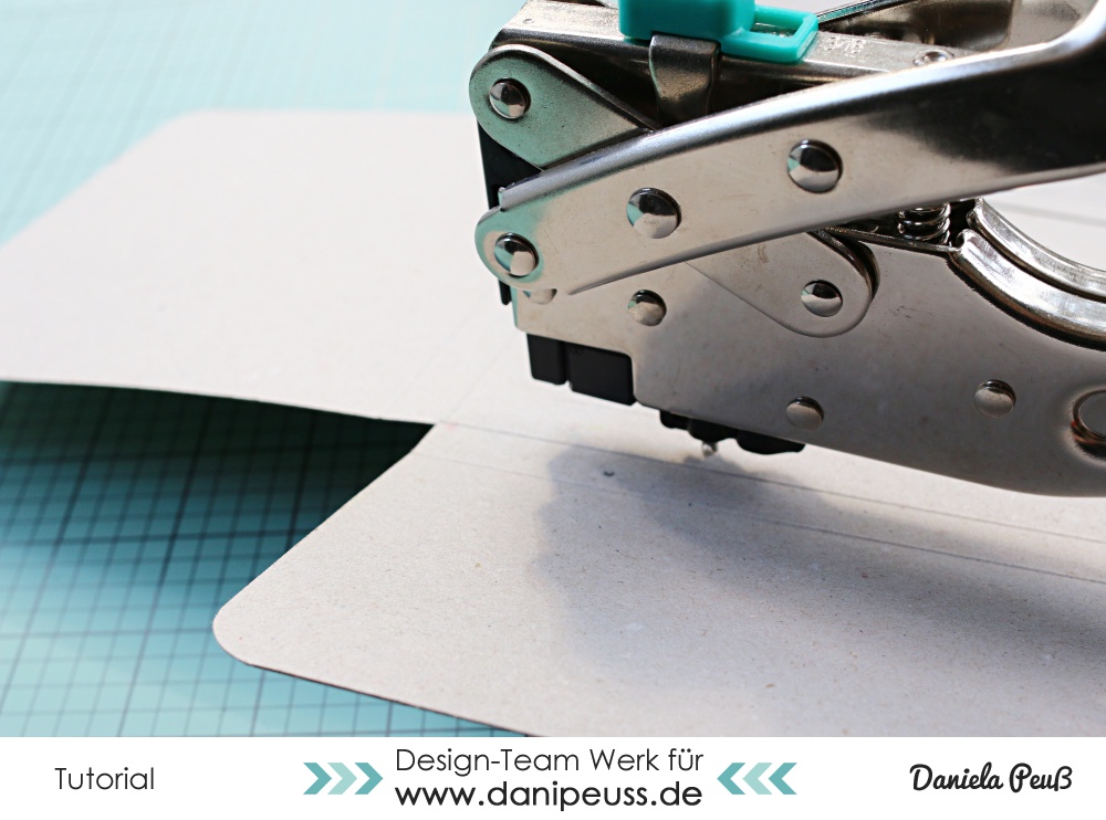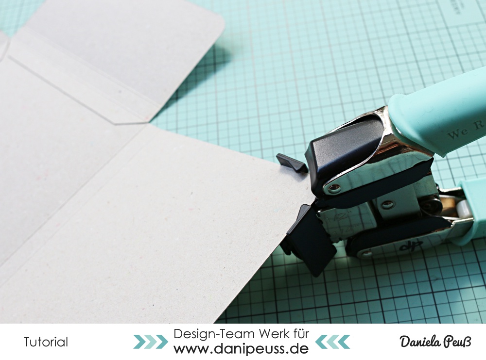 Danach stanzt ihr Löcher an den angezeichneten Punkten (wer möchte kann die Löcher natürlich noch mit Eyelets verstärken)