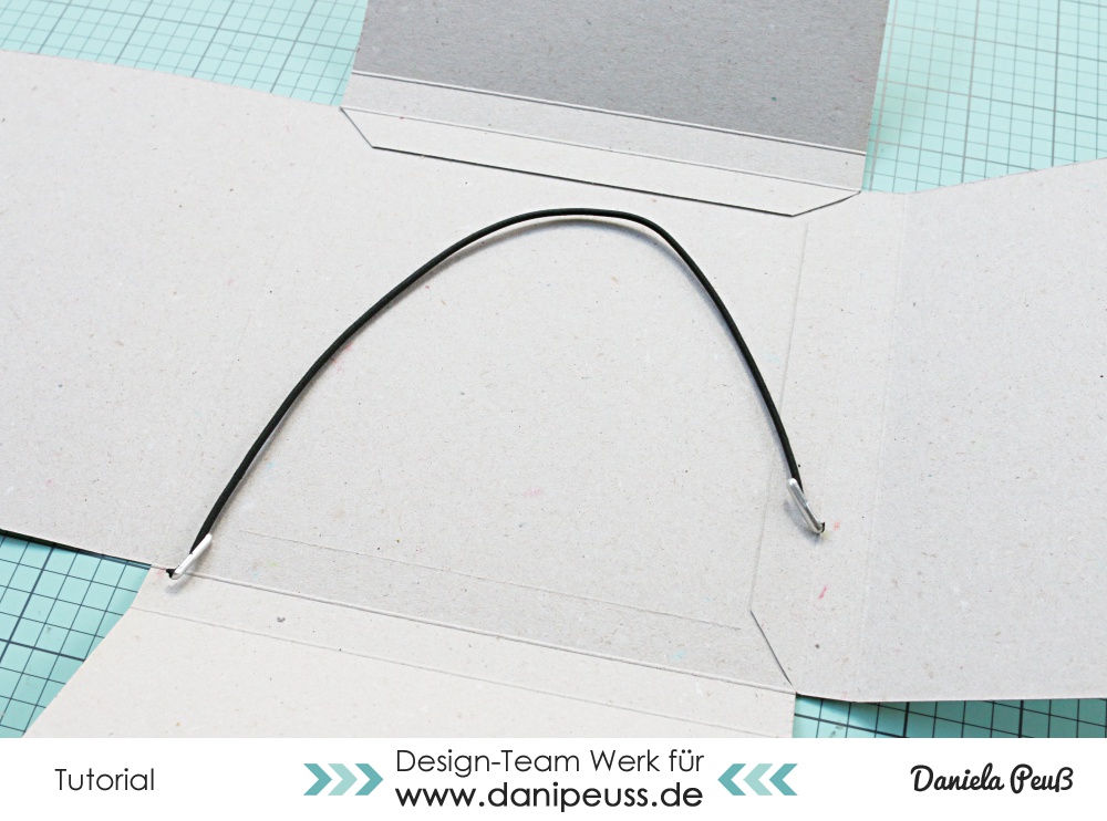 Jetzt fehlt unserer Eckspannmappe eigentlich nur noch das "Eckspann-" und deshalb brauchen wir jetzt die Gummizugschnur
