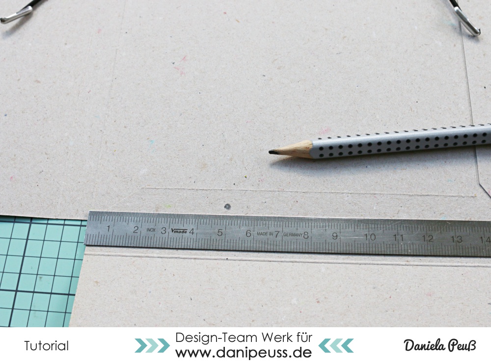 Legt den 6x12" Bogen mit der langen Seite oben an und zieht bei 6" und bei 6 1/2" eine Falzlinie