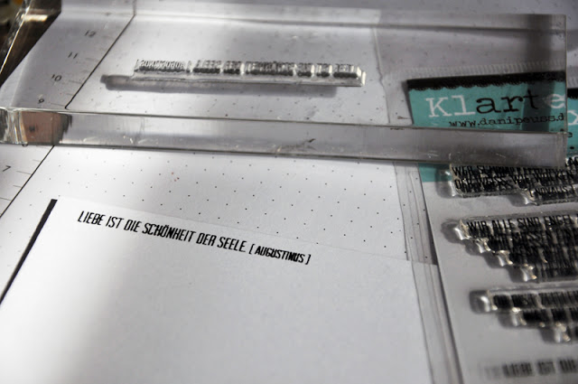 Stempelt einen Spruch auf einen Streifen weißes Papier. Da reicht auch festeres Druckerpapier.