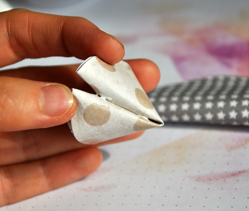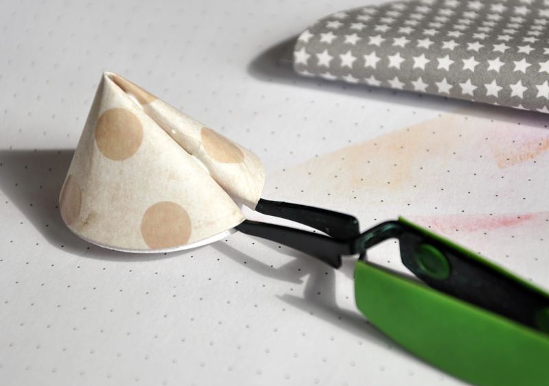 Ich habe den Glückskeks dann mit meiner selbstschließenden Pinzette fixiert und trocknen lassen. Funktioniert natürlich genauso gut mit einer Klammer oder einem Clip.