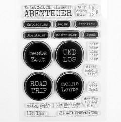 Und hier ist meine Umsetzung als Layout - ich habe nur 1 Foto verwendet und die 4 Quadrate mit Deko-Elementen besetzt. Der große gestempelte Titel ist ein echter Favorit und auch dias Stempelraster am unteren Rand :)
