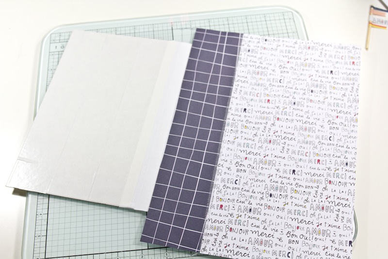 Der Abstand zwischen den beiden Pappen beträgt ungefähr einen Zentimeter. Das Patterned Paper für die Buchdeckel stammt übrigens aus dem Dear Lizzy "Lovely Day" Sonderkit.