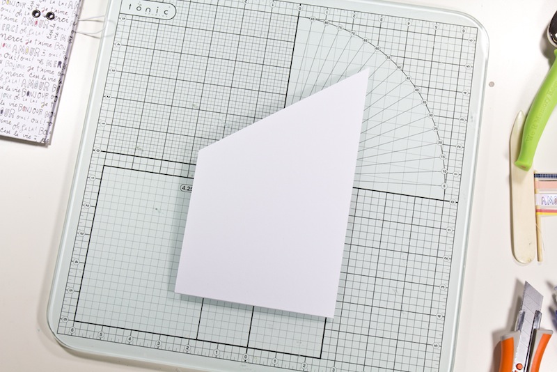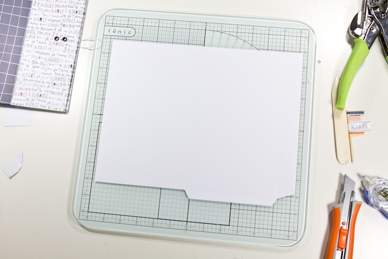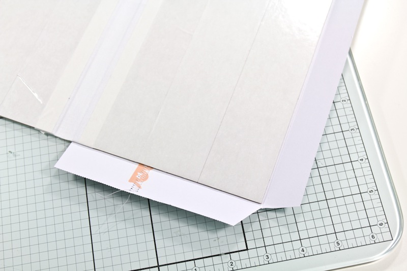 Beim Zusammenfalteten Pocket (noch nicht kleben!) habe ich einen Teil angeschrägt, damit man die Papiere später leichter entnehmen kann.