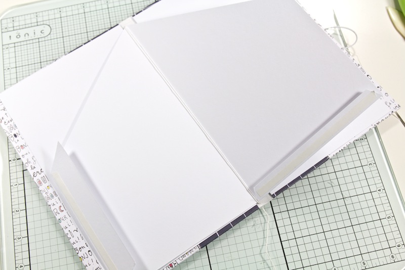 Diese Seiten habe ich in die Mappe eingenäht. Meine Idee, nicht durch den Cardstock durch zu nähen, war übrigens suboptimal... Ich habe mir dann aber beholfen und den Faden innen noch mit einem Stückchen Washi Tape fixiert.
