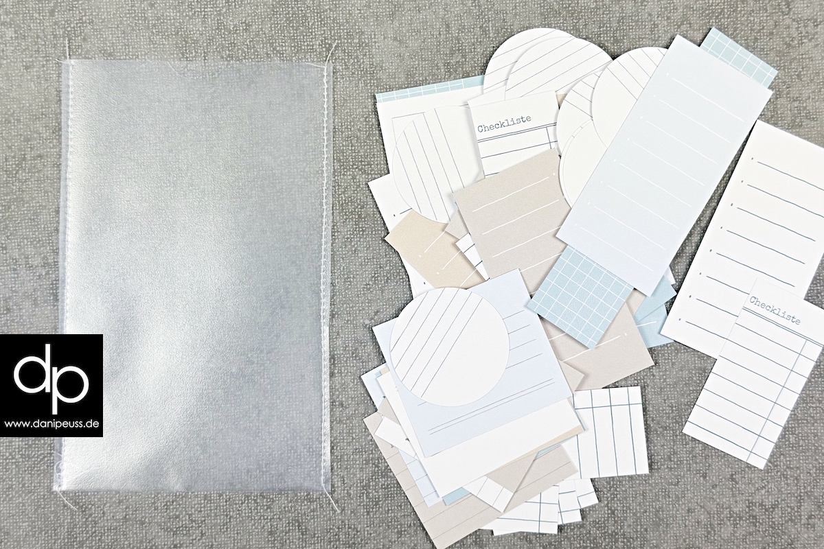 Hierfür habe ich eine unserer A6-Stempelhüllen genommen und die links und rechts ein bisschen schmaler genäht, damit es von der Breite passt: