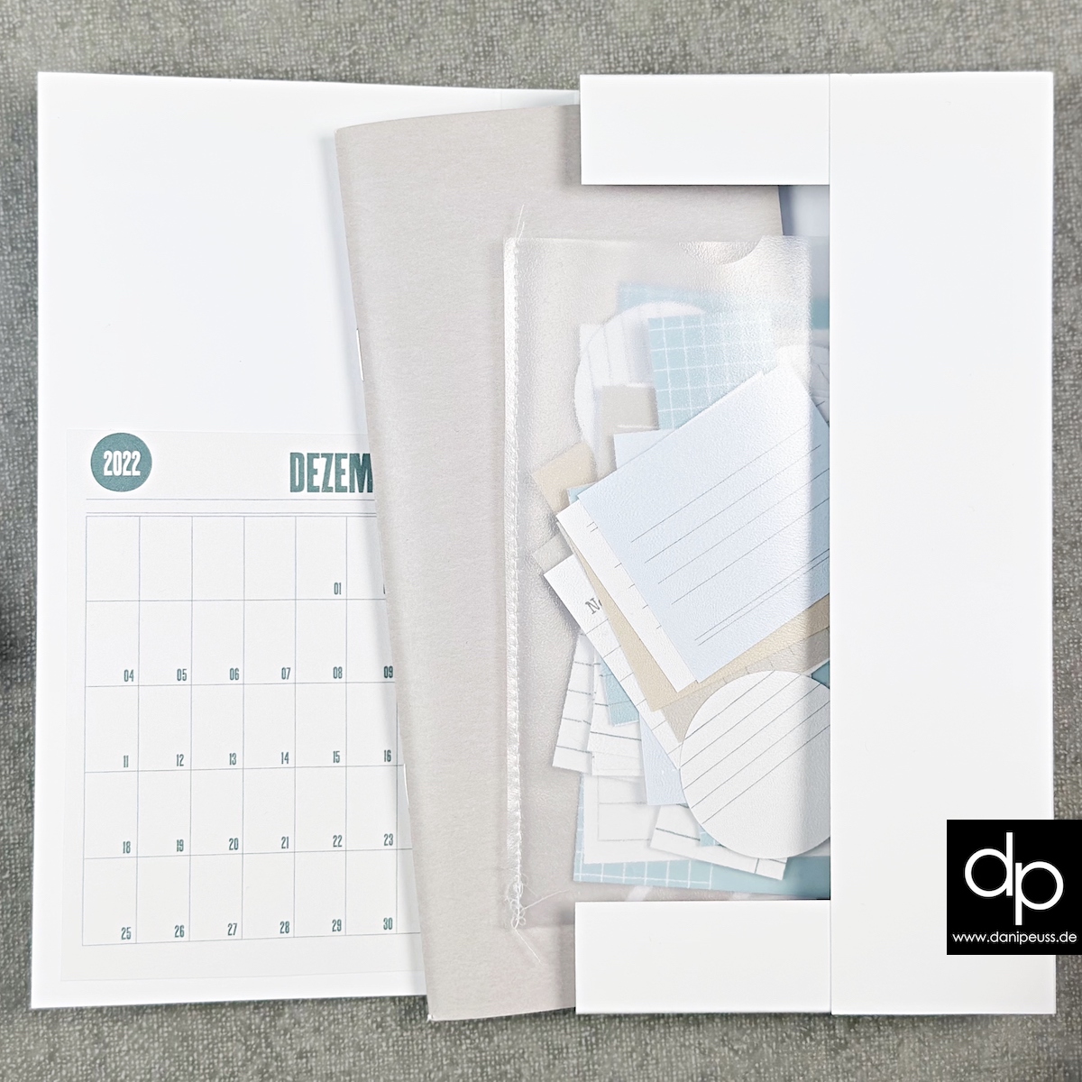 Ich habe auf der Innenseite des Covers den Kalender aus dem Printable Pack aufgeklebt: