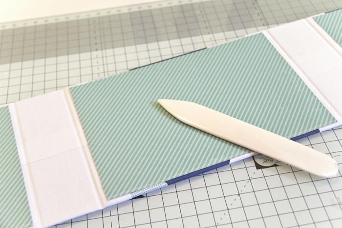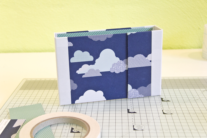 Nun können die Buchteile mit Patterned Paper bezogen werden