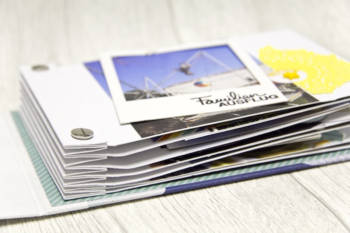 Um Seiten in dieses Album zu integrieren könnt Ihr beispielsweise eine Ringmechanik einsetzen (wie das geht, habe ich euch hier gezeigt). Oder Ihr macht ein Leporello draus. Oder Ihr verwendet wie ich Buchschrauben (wie in diesem Konfirmationsmini) - das ist supereinfach und geht ganz schnell.