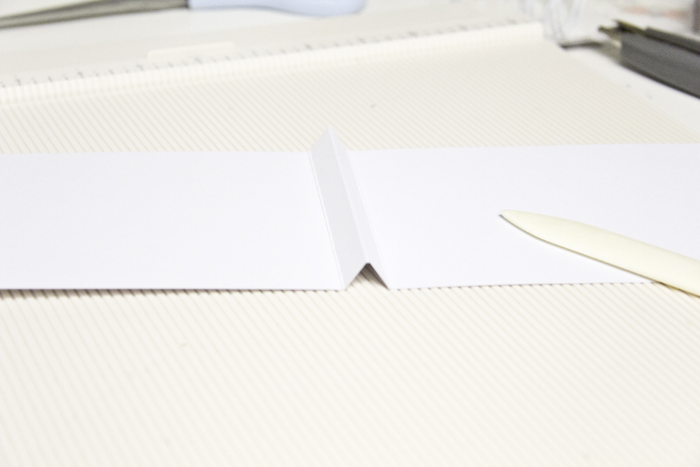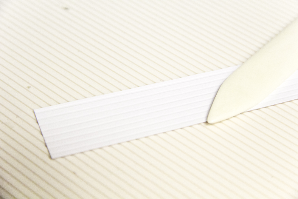 Nehmt nun das kleine Cardstockstück und nutet es längs in den kleinsten Abständen die Ihr habt.