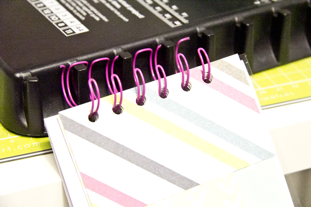 - Einen Streifen Cardstock 11 x 2,7 cm (einen kleinen Tick breiter als der Durchmesser der Drahtbindung)