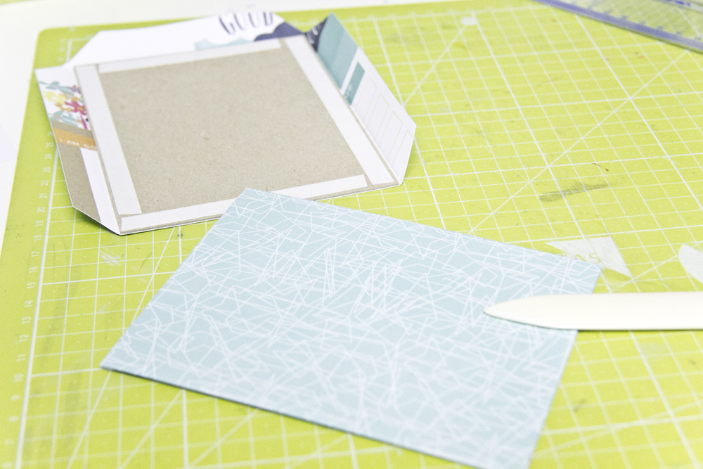 Verseht die Rückseiten des Cardstocks vom "Innenalbum" mit doppelseitigem Klebeband...