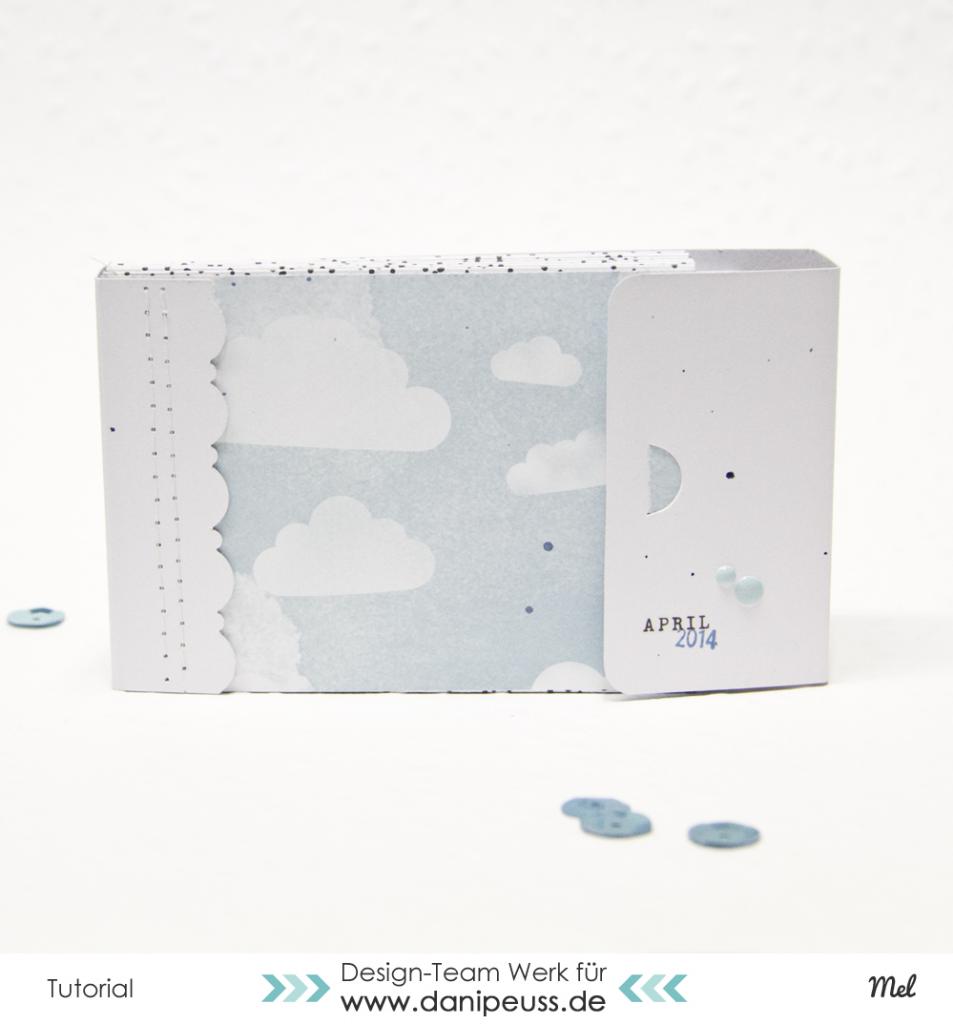 Dreht das fast fertige Mini nun um und klebt auf der Rückseite den Cardstock fest.