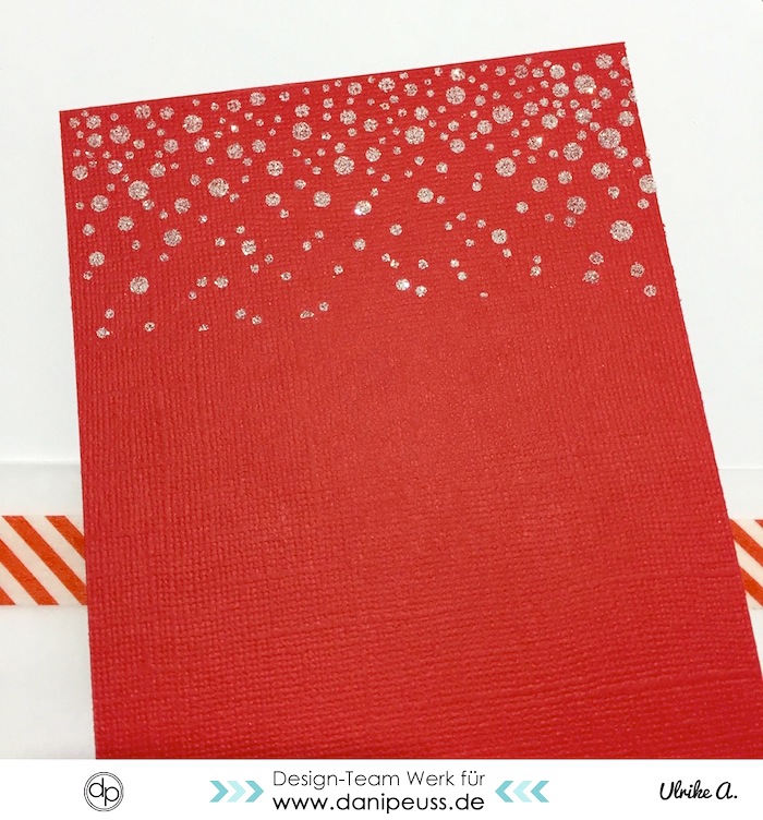 ...da der Stempel nicht die Breite der Karte hat, hab ich gleich nochmal daneben gestempelt, auch hier das Embossingpulver drüber gestreut und das ganze embosst.
