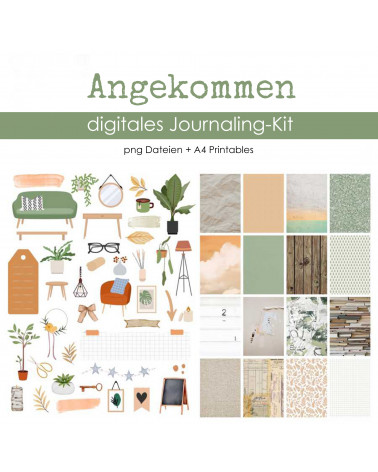 16 digitale A4 Papiere (auch als Printables verwendbar) sowie passende Deko-Elemente als einzelne .png Dateien - freigestellt auf transparentem Hintergrund und als Printable auf A4.