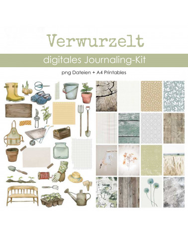 16 digitale A4 Papiere (auch als Printables verwendbar) sowie passende Deko-Elemente als einzelne .png Dateien - freigestellt auf transparentem Hintergrund und als Printable auf A4.