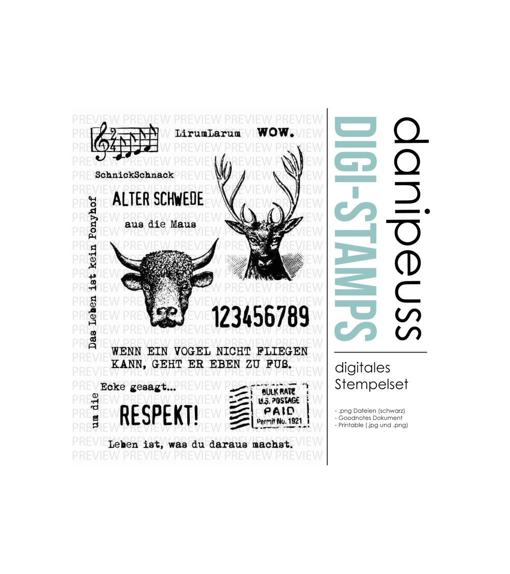Die digitalen Stempel und Printables sind für den rein privaten Gebrauch bestimmt. Bei Interesse an einer kommerziellen Nutzung besteht die Möglichkeit, eine Lizenz hierfür zu erwerben. Bitte Kontaktaufnahme unter info@danipeuss.de