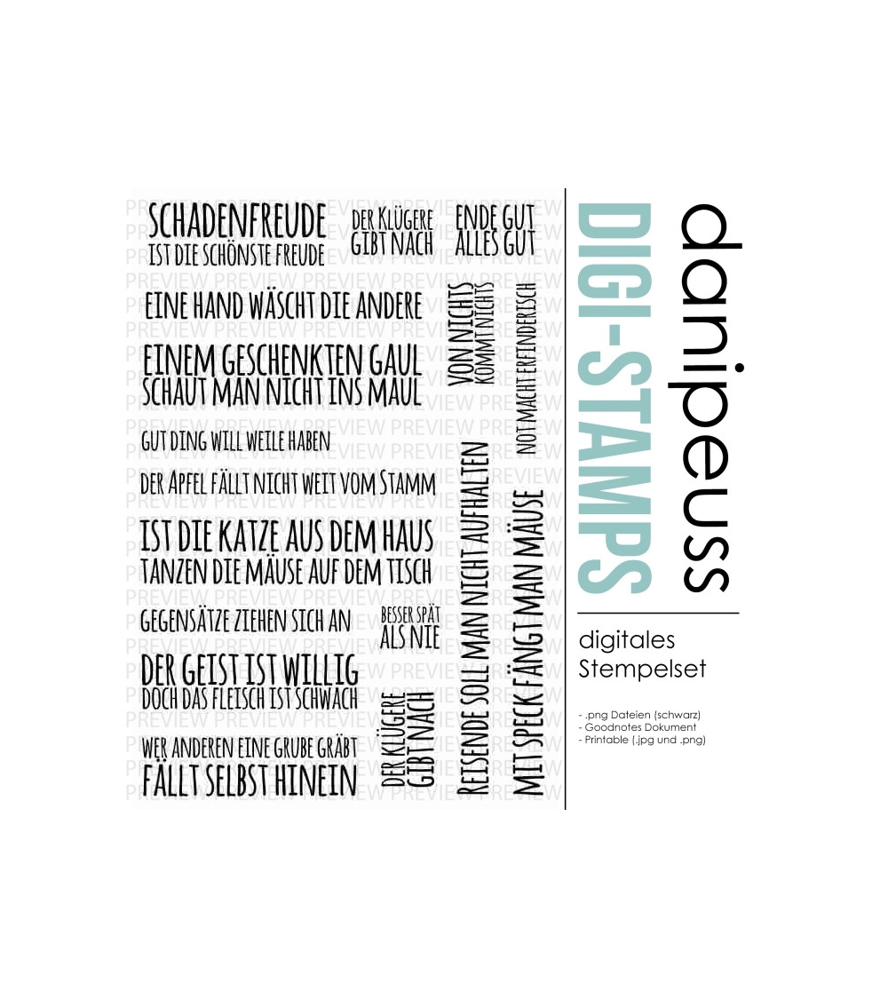 Die digitalen Stempel und Printables sind für den rein privaten Gebrauch bestimmt. Bei Interesse an einer kommerziellen Nutzung besteht die Möglichkeit, eine Lizenz hierfür zu erwerben. Bitte Kontaktaufnahme unter info@danipeuss.de