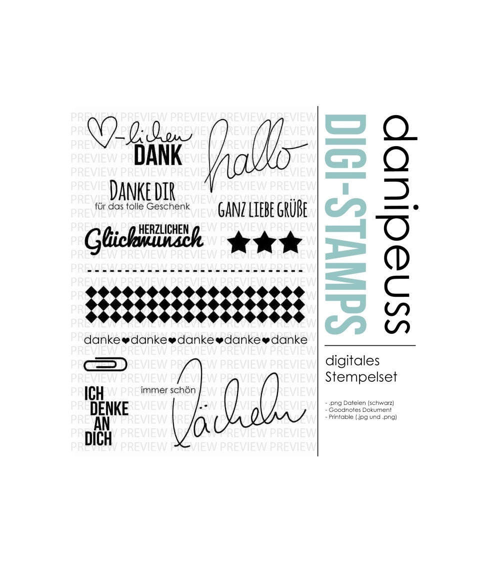 Die digitalen Stempel und Printables sind für den rein privaten Gebrauch bestimmt. Bei Interesse an einer kommerziellen Nutzung besteht die Möglichkeit, eine Lizenz hierfür zu erwerben. Bitte Kontaktaufnahme unter info@danipeuss.de