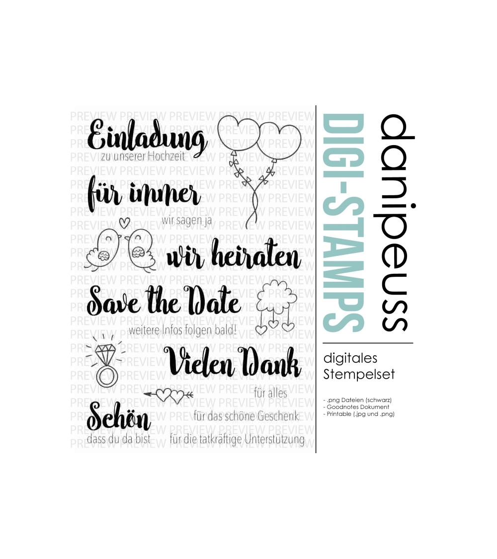 Digitales Stempelset (1125) "Hochzeit Einladung"