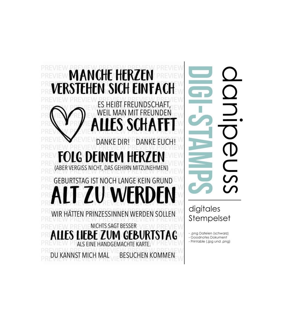 Die digitalen Stempel und Printables sind für den rein privaten Gebrauch bestimmt. Bei Interesse an einer kommerziellen Nutzung besteht die Möglichkeit, eine Lizenz hierfür zu erwerben. Bitte Kontaktaufnahme unter info@danipeuss.de