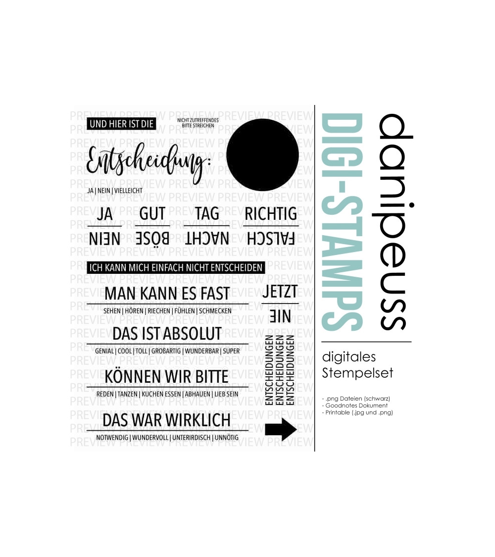 Die digitalen Stempel und Printables sind für den rein privaten Gebrauch bestimmt. Bei Interesse an einer kommerziellen Nutzung besteht die Möglichkeit, eine Lizenz hierfür zu erwerben. Bitte Kontaktaufnahme unter info@danipeuss.de
