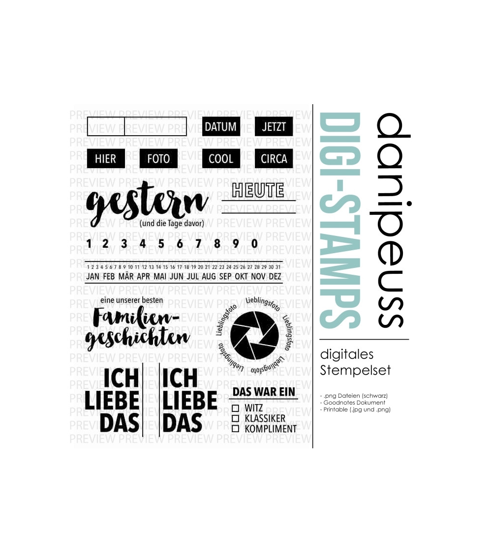 Die digitalen Stempel und Printables sind für den rein privaten Gebrauch bestimmt. Bei Interesse an einer kommerziellen Nutzung besteht die Möglichkeit, eine Lizenz hierfür zu erwerben. Bitte Kontaktaufnahme unter info@danipeuss.de
