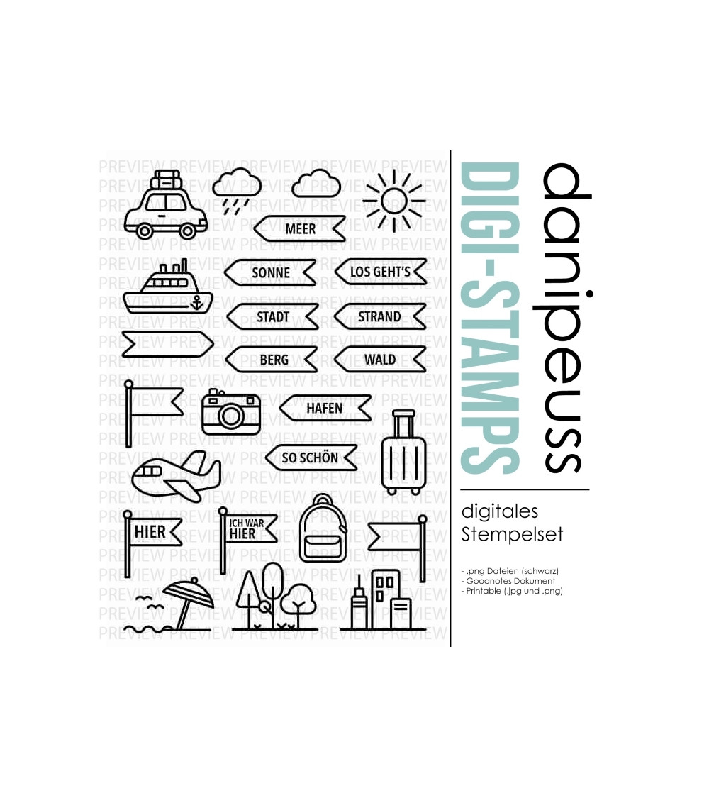 Digitales Stempelset (1344) "Strand Wald Stadt"