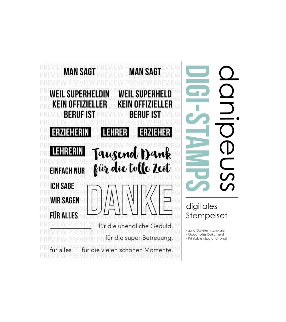 Die digitalen Stempel und Printables sind für den rein privaten Gebrauch bestimmt. Bei Interesse an einer kommerziellen Nutzung besteht die Möglichkeit, eine Lizenz hierfür zu erwerben. Bitte Kontaktaufnahme unter info@danipeuss.de