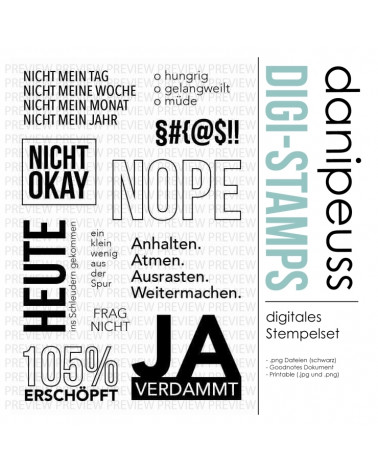 Die digitalen Stempel und Printables sind für den rein privaten Gebrauch bestimmt. Bei Interesse an einer kommerziellen Nutzung besteht die Möglichkeit, eine Lizenz hierfür zu erwerben. Bitte Kontaktaufnahme unter info@danipeuss.de