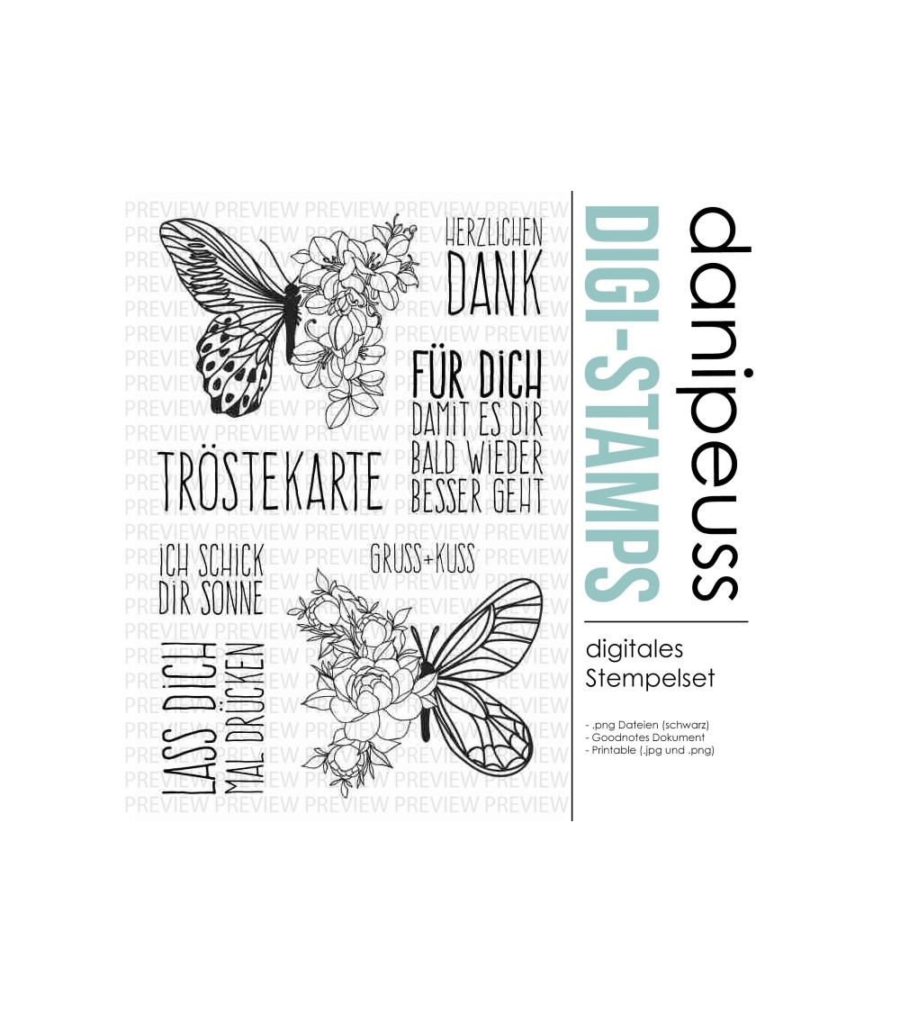 Die digitalen Stempel und Printables sind für den rein privaten Gebrauch bestimmt. Bei Interesse an einer kommerziellen Nutzung besteht die Möglichkeit, eine Lizenz hierfür zu erwerben. Bitte Kontaktaufnahme unter info@danipeuss.de