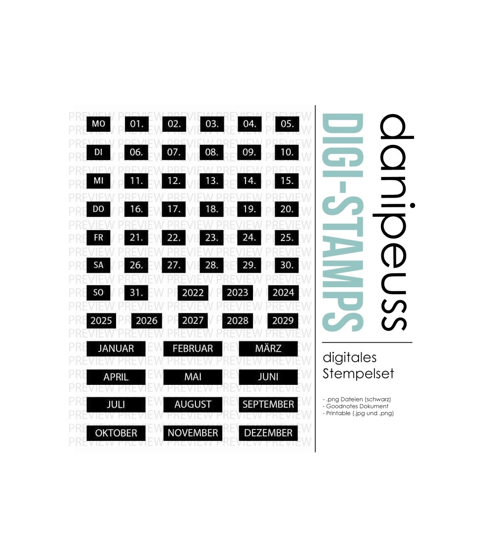 Die digitalen Stempel und Printables sind für den rein privaten Gebrauch bestimmt. Bei Interesse an einer kommerziellen Nutzung besteht die Möglichkeit, eine Lizenz hierfür zu erwerben. Bitte Kontaktaufnahme unter info@danipeuss.de