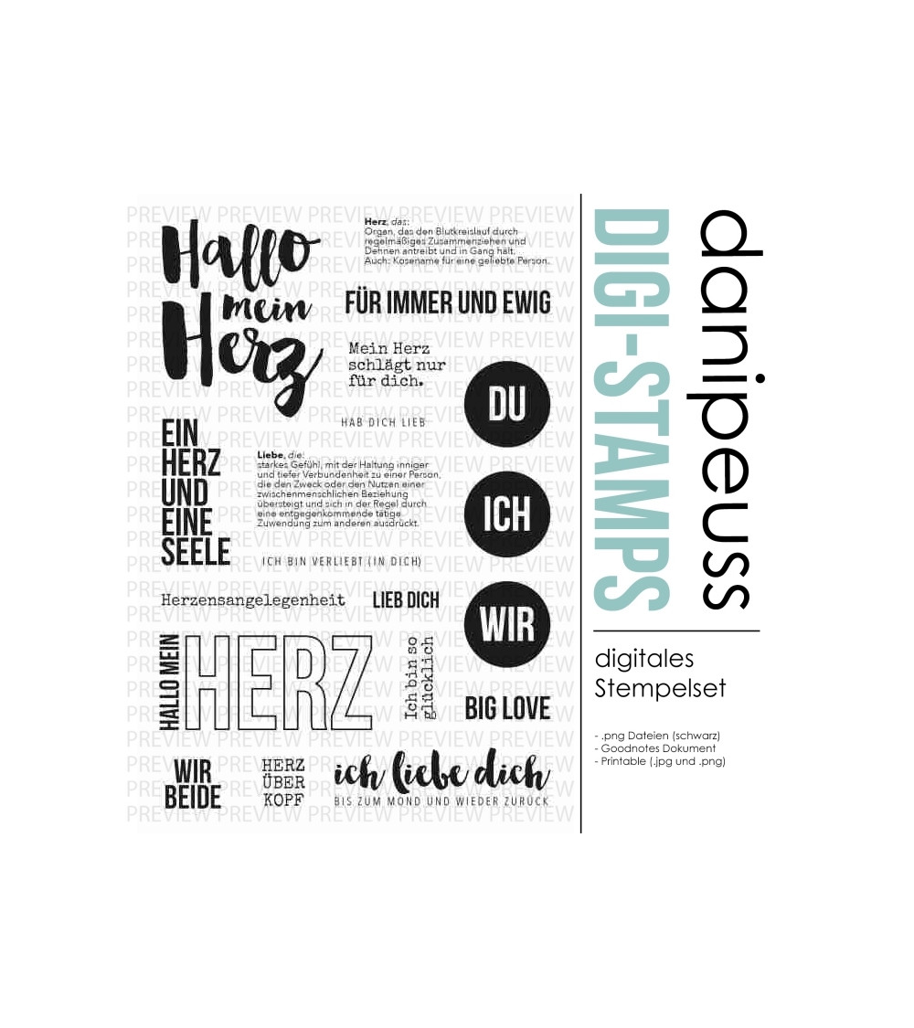 Die digitalen Stempel und Printables sind für den rein privaten Gebrauch bestimmt. Bei Interesse an einer kommerziellen Nutzung besteht die Möglichkeit, eine Lizenz hierfür zu erwerben. Bitte Kontaktaufnahme unter info@danipeuss.de