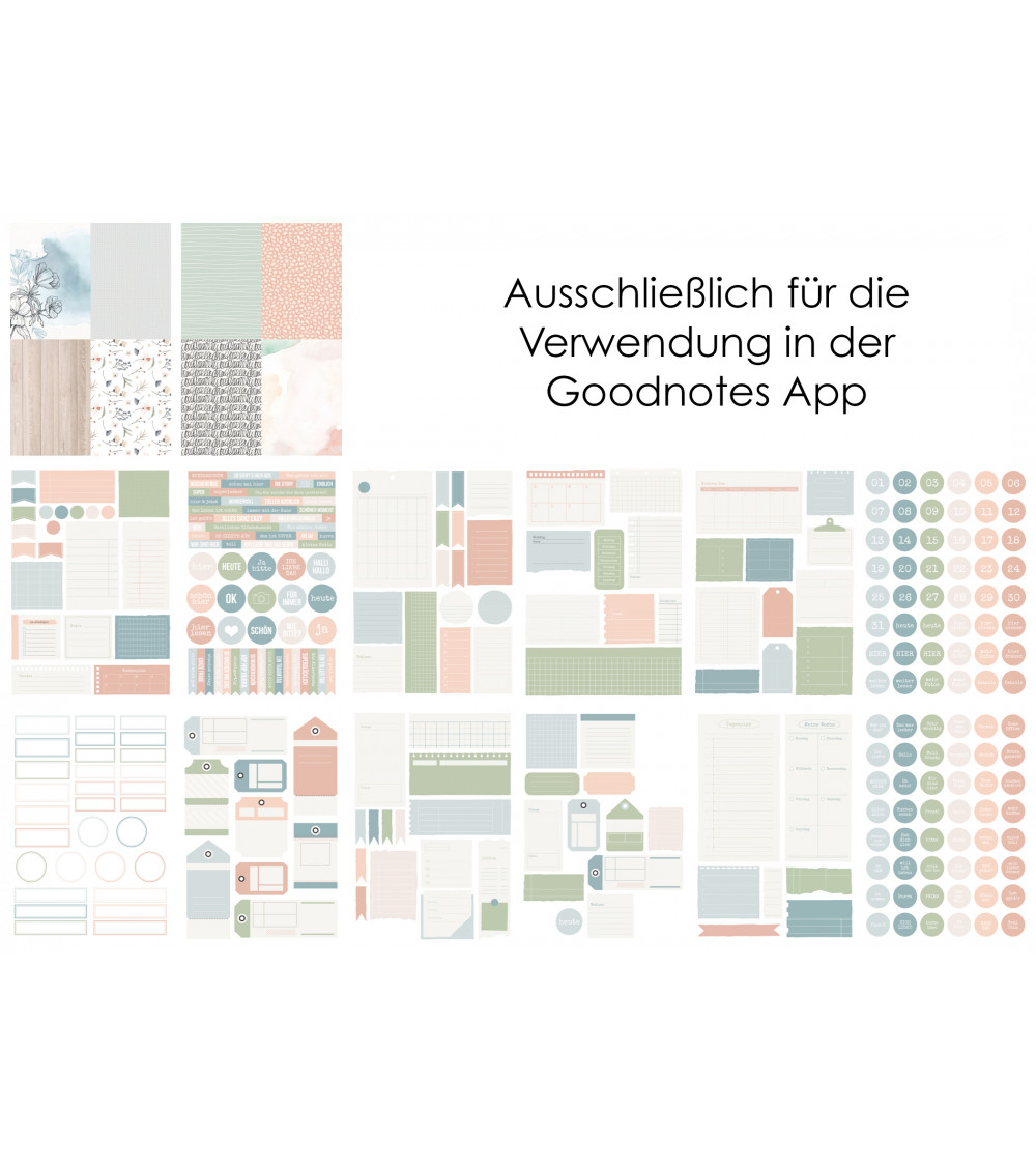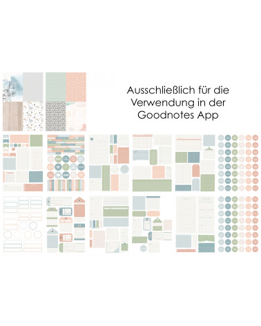 digitale Kollektion für Journaling auf dem iPad - auf 14 A4-Seiten fertig formatiert für die Benutzung in der Goodnotes App