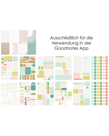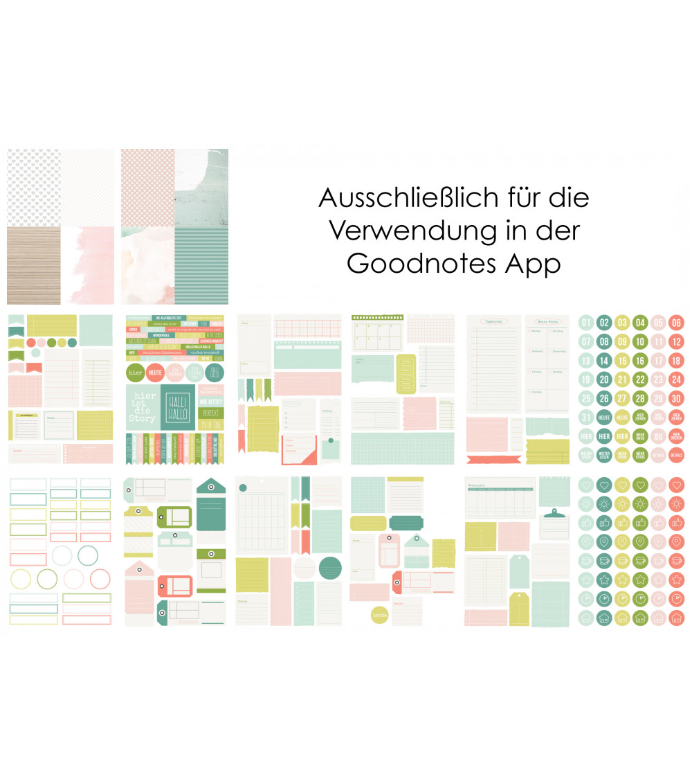 digitale Kollektion für Journaling auf dem iPad - auf 14 A4-Seiten fertig formatiert für die Benutzung in der Goodnotes App