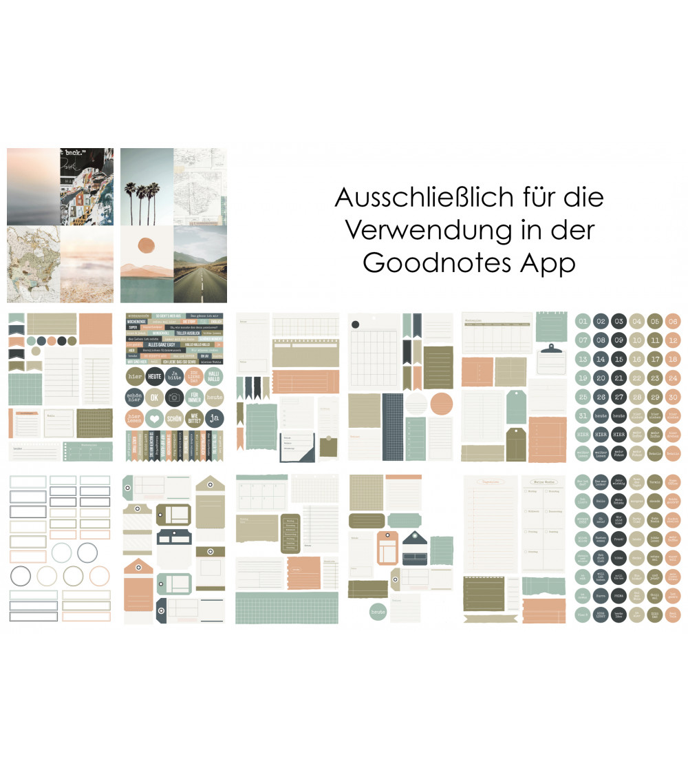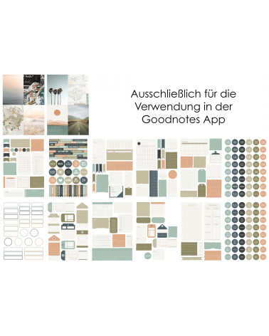 digitale Kollektion für Journaling auf dem iPad - auf 14 A4-Seiten fertig formatiert für die Benutzung in der Goodnotes App