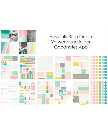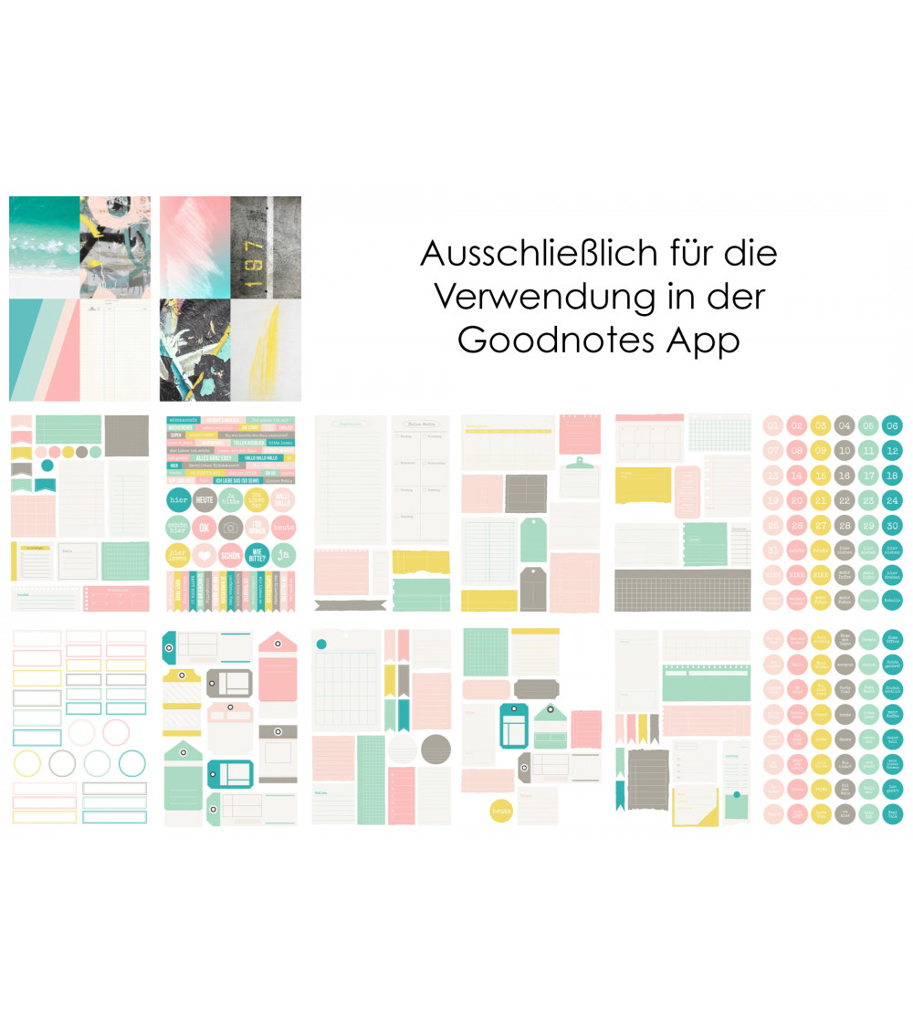 digitale Kollektion für Journaling auf dem iPad - auf 14 A4-Seiten fertig formatiert für die Benutzung in der Goodnotes App