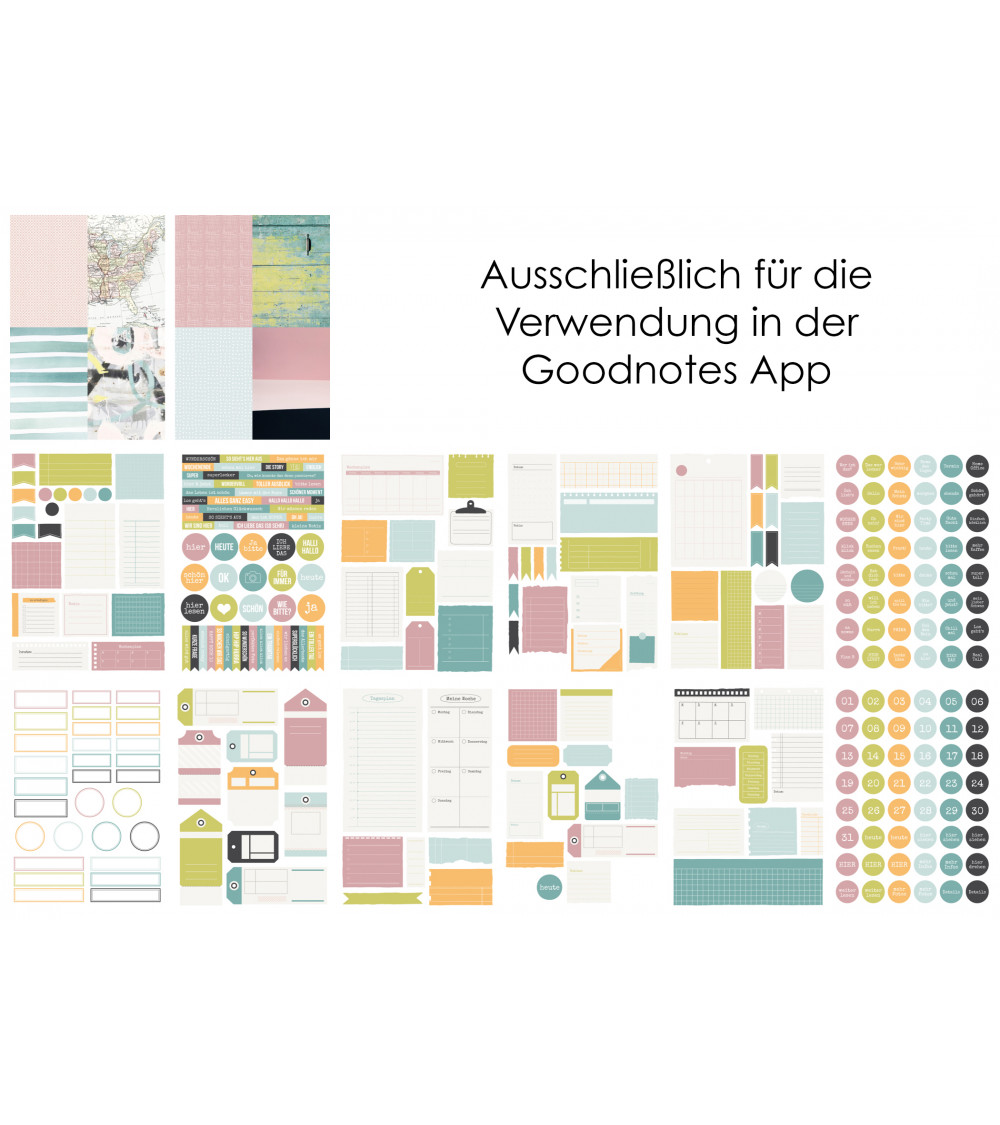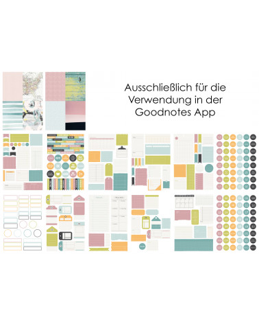 digitale Kollektion für Journaling auf dem iPad - auf 14 A4-Seiten fertig formatiert für die Benutzung in der Goodnotes App