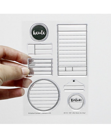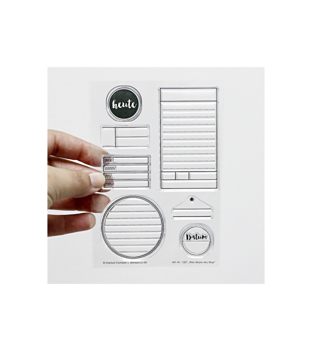 Klartext-Stempelset (1307) "Wer Wann Wo Was"