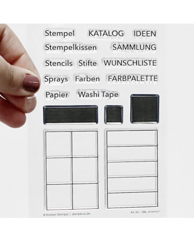 - einfach auf einem Acrylblock anbringen, Tinte auftragen und losstempeln