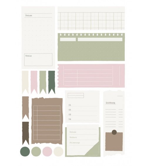 6 DIN A4 Seiten Printables zum Download (pdf-Format) mit zuschneidbaren Designs (Farben passend zur angegebenen Kollektion)