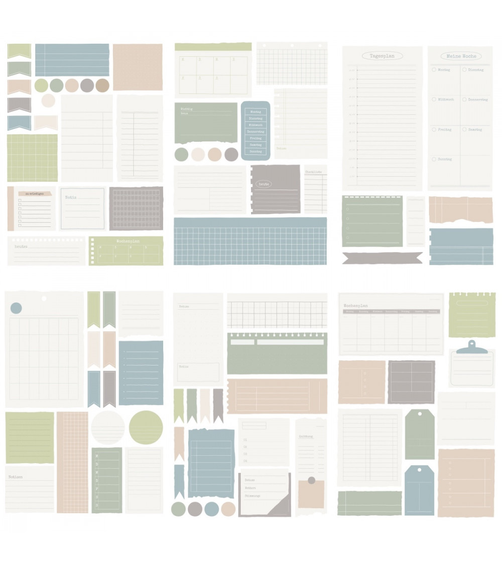 6 DIN A4 Seiten Printables zum Download (pdf-Format) mit zuschneidbaren Designs (Farben passend zur angegebenen Kollektion)