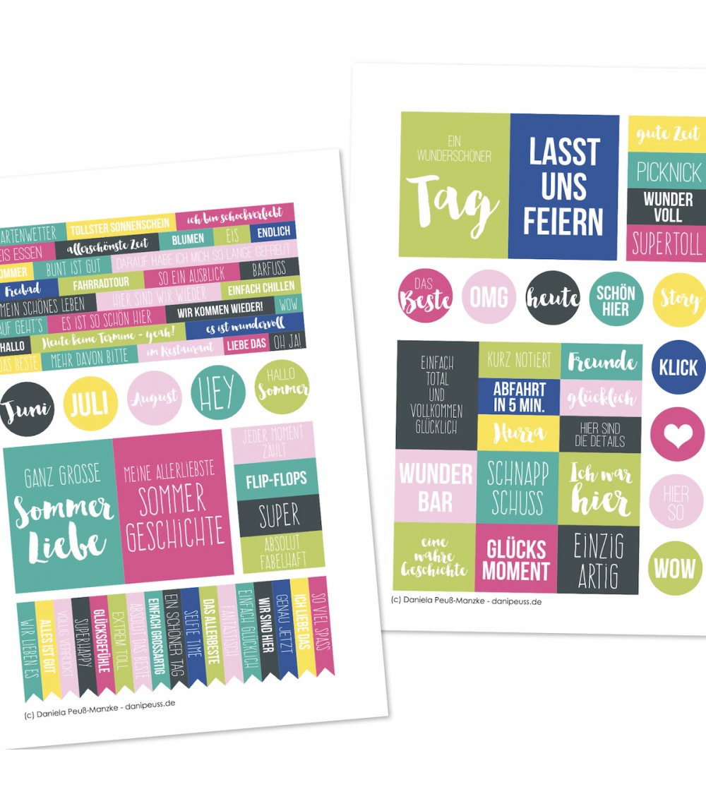 Dieses Printable ist eine Druckvorlage als pdf im Format DIN A 4 und kann problemlos auf Standarddruckern und den unterschiedlichsten Papieren ausgedruckt werden. Die einzelnen Motive können dann ausgeschnitten oder ausgestanzt werden, um sie für Layouts, Minialben und Karten zu verwenden.