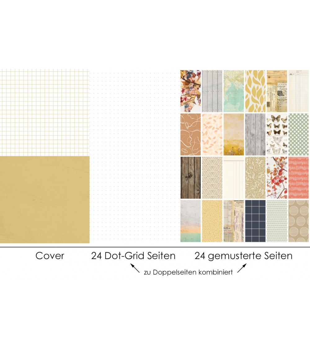 1 danidori Notizheft/Minialbum im Format 10,5x21cm, 48 Innenseiten - gemustert (alle Designs auf dem Produktbild) und Dot Grid