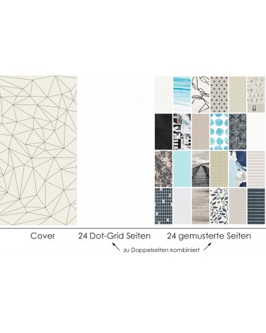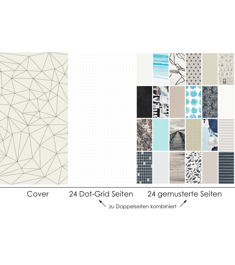 1 danidori Notizheft/Minialbum im Format 10,5x21cm, 48 Innenseiten - gemustert (alle Designs auf dem Produktbild) und Dot Grid