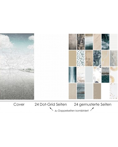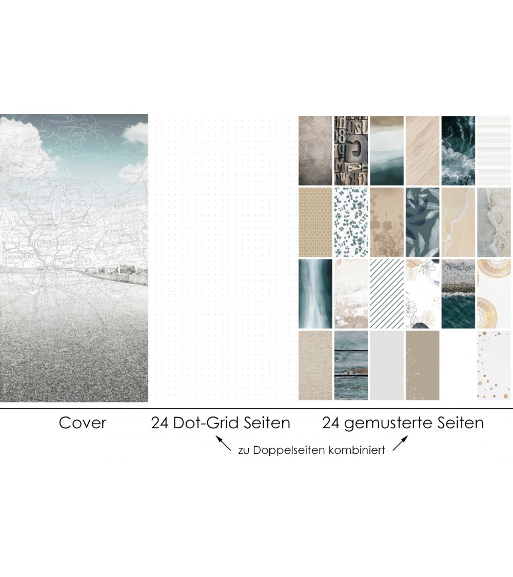 danidori Notizheft/Minialbum im Format 10,5x21cm, 48 Innenseiten - gemustert (alle Designs auf dem Produktbild) und Dot Grid