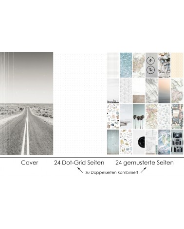 1 danidori Notizheft/Minialbum im Format 10,5x21cm, 48 Innenseiten - gemustert (alle Designs auf dem Produktbild) und Dot Grid